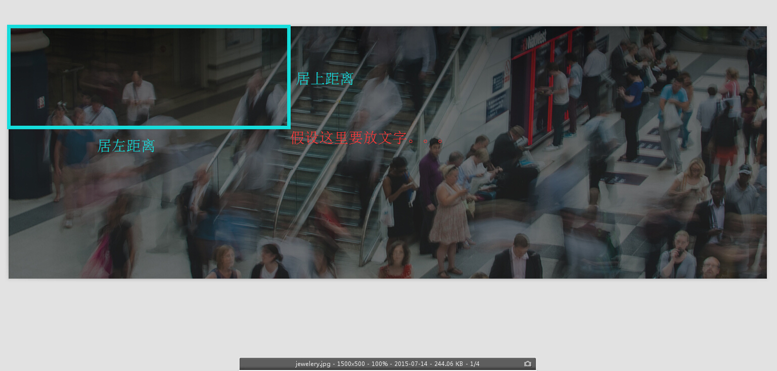 快速设置位置的方法:把背景图以1:1大小显示(注意是1:1大小,也就是100%),然后使用截图工具(比如QQ的截图工具)来估算居左和居上的距离,如下图所示: