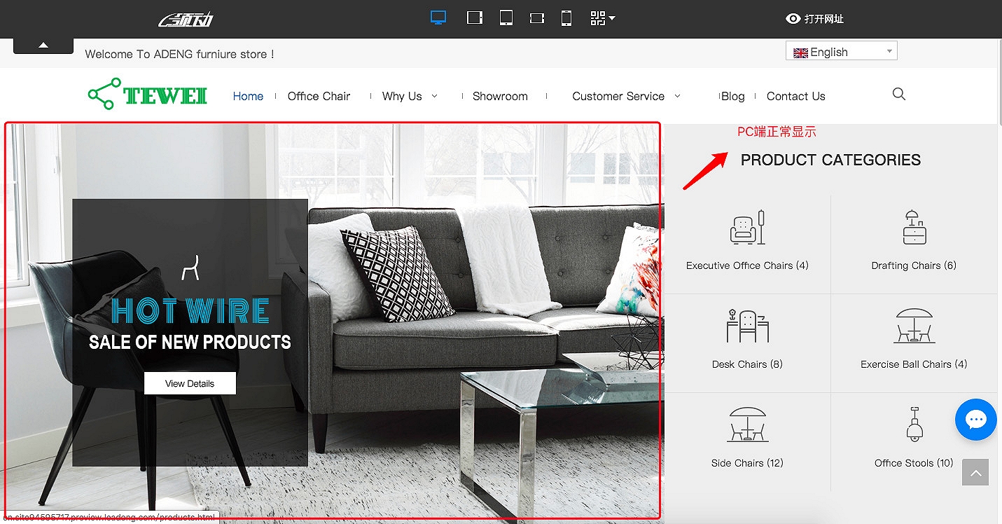 (1)登录网站后台,进入“编辑网站”界面点击“手机”图标进入移动端编辑,如下图所示: