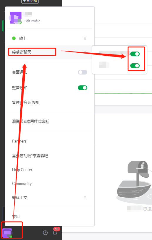 点击左下角头像,下拉菜单中点击Accept chats from(接受从聊天),Properties开启后客户可以直接在线聊天(前提是在线状态),Properties关闭后只能进行一个表单提交,不能在线聊天。
