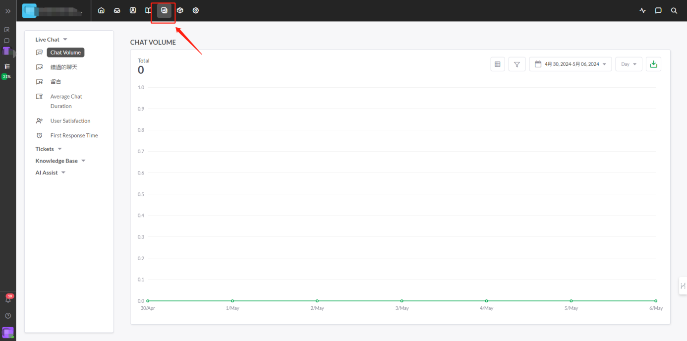 (数量/错过的留言/平均会话时长/访客满意度/首次回应时间)