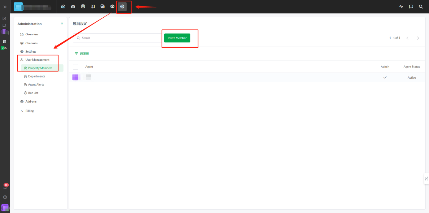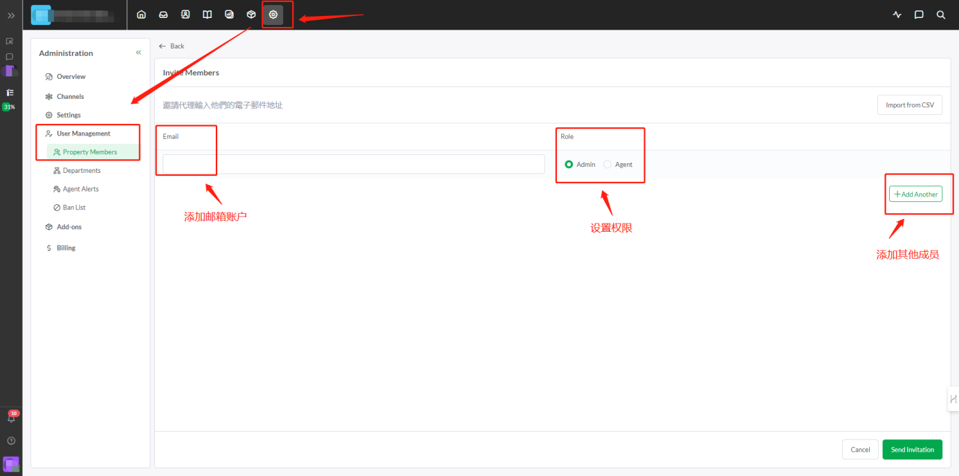 可以添加其他成员,分为两种角色:Admin(管理权限)和Agent(普通成员)
