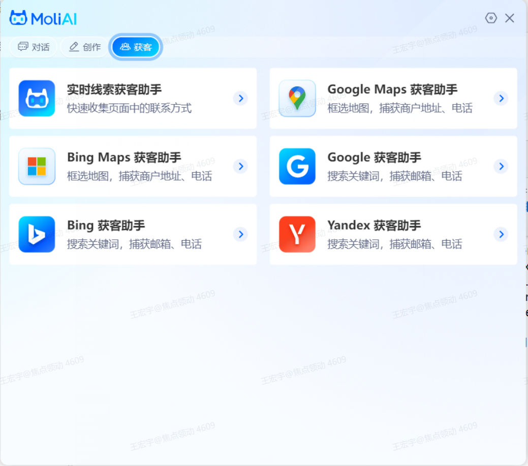 (12)联系人线索页面为您整理收集了您使用获客助手所挖掘成功的全部信息,如下图所示: